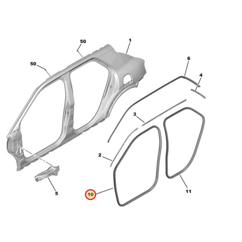 Door entry weatherstrip, front door (L/R) OEM Citroen C4 Cactus