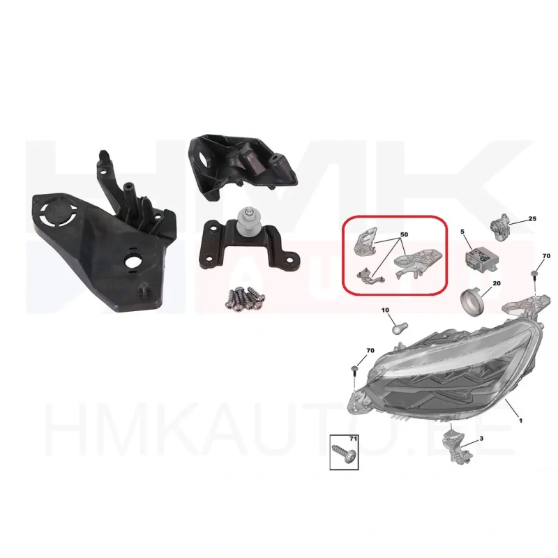 Headlight mounting bracket repair kit, left OEM Peugeot 208,2008 2019-