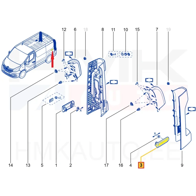 Sliding door guide rail end cover, left OEM Renault Trafic/Opel Vivaro 2014- LWB