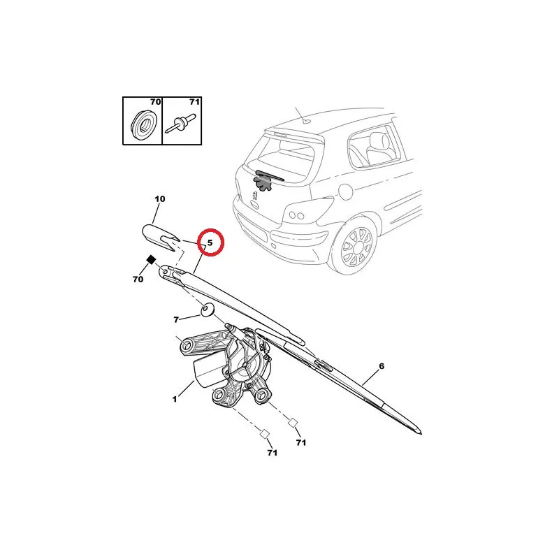 Wiper arm rear Peugeot 307 hatchback