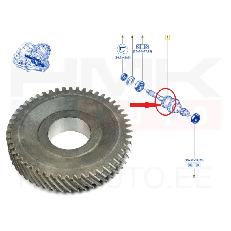 6-käigu hammasratas peavõllile 51H Ø35mm Renault PF6 k.kast 28/51 2014-