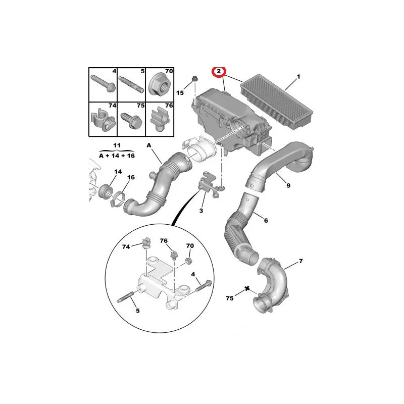 Õhufiltri korpus (koos filtriga) OEM Citroen/Peugeot 1,6HDI