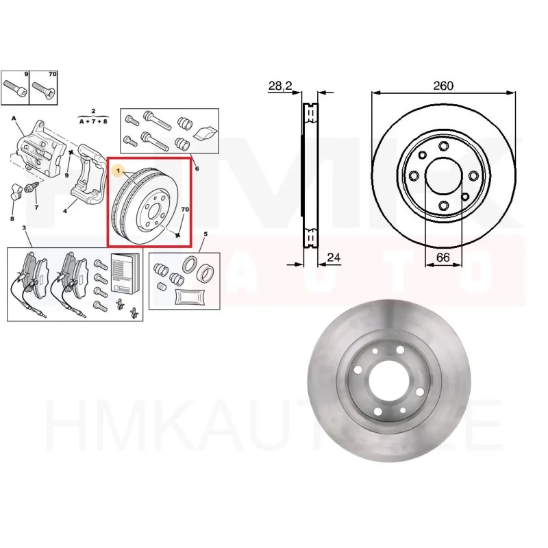 Piduriketaste komplekt (2tk) eesmine OEM Peugeot 406