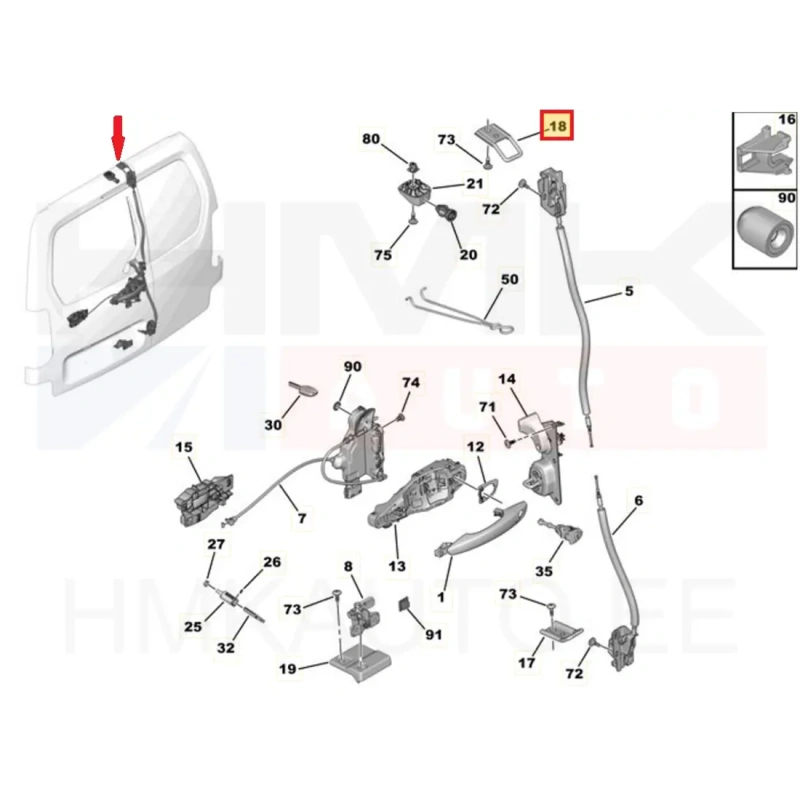 Ukselukusti vastus tagauksele ülemine parem OEM Berlingo/Partner 2008-