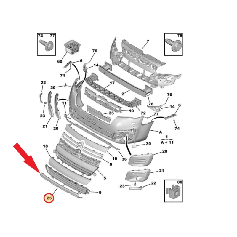 Etupuskurin spoileri OEM Citroen Berlingo/Peugeot Partner 2012-