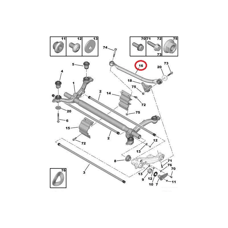 Taka-akselin poikittaistukitanko oikea OEM Peugeot 206 SW