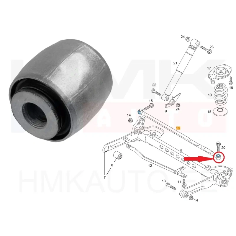 Taka-akselin poikkitukitankon/Panhard-tankon holkki vasen Renault Trafic II