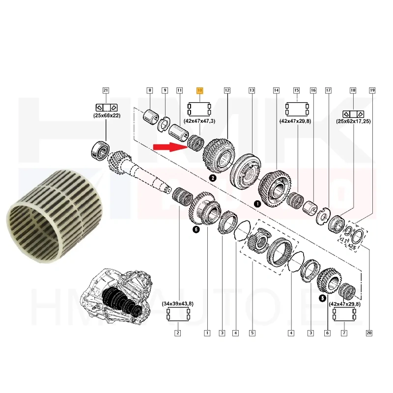 Vaihteiston neulalaakeri 2-vaihde 42x47x48 OEM Renault