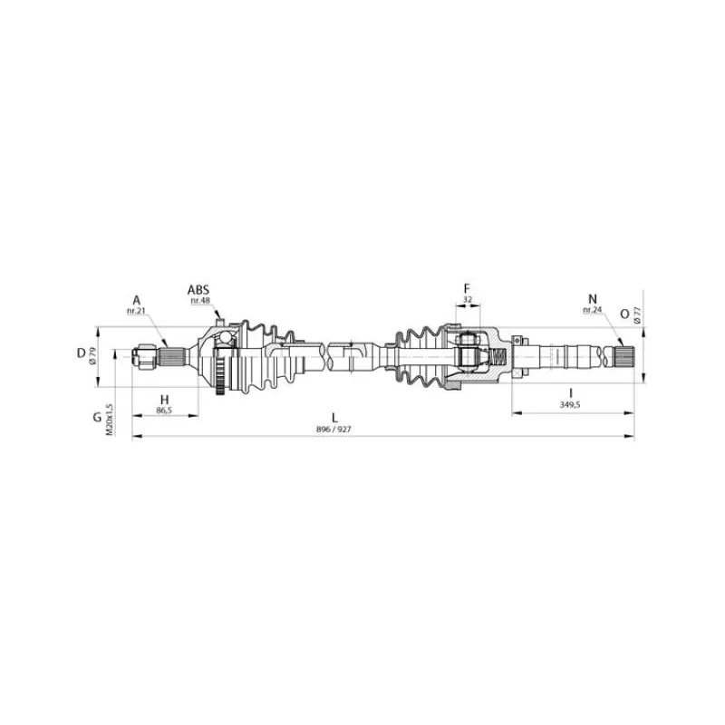 Arbre de transmission complet droit Peugeot 206 1,9D