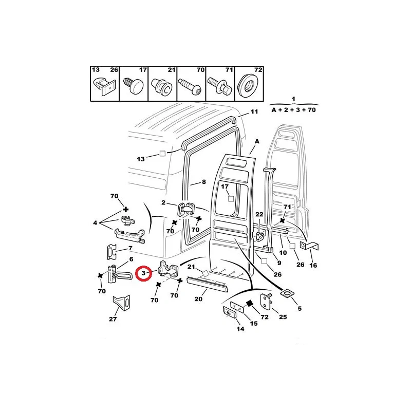 Charnière de porte arrière inférieure gauche OEM Jumper/Boxer/Ducato 1994-2006 (portes ouvrant à 180°)
