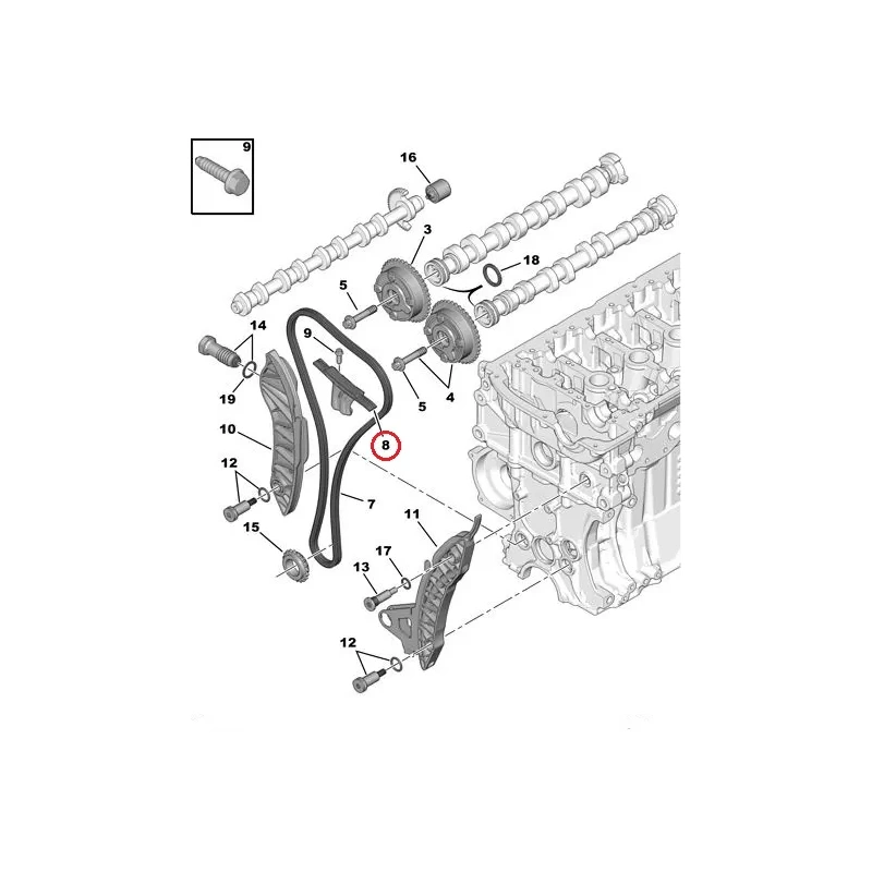 Coulisse, chaîne de distribution, supérieur OEM Citroen/Peugeot EP-moteurs