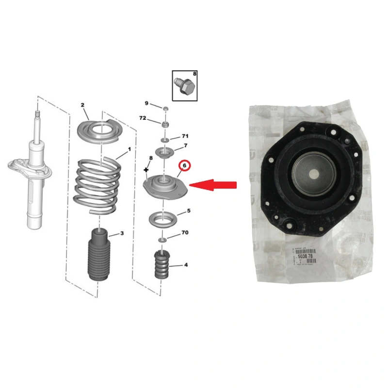 Coupelle d'amortisseur, essieu avant OEM Partner/Berlingo/P306/Xsara/ZX