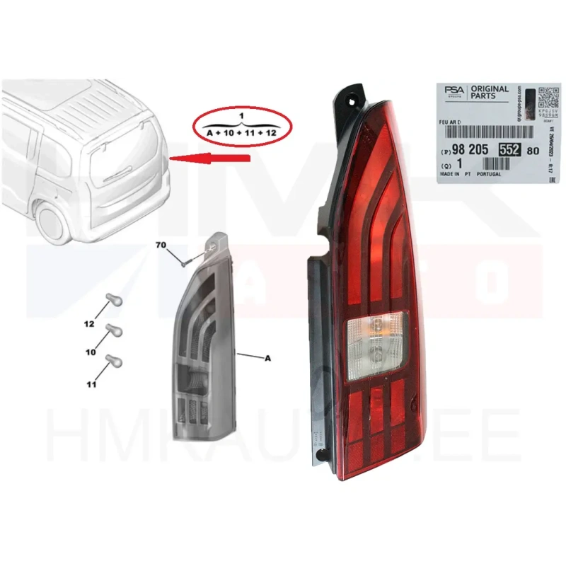 Feu arrière droit Citroen OEM Peugeot Partner/Rifter 2019- (avec hayon)