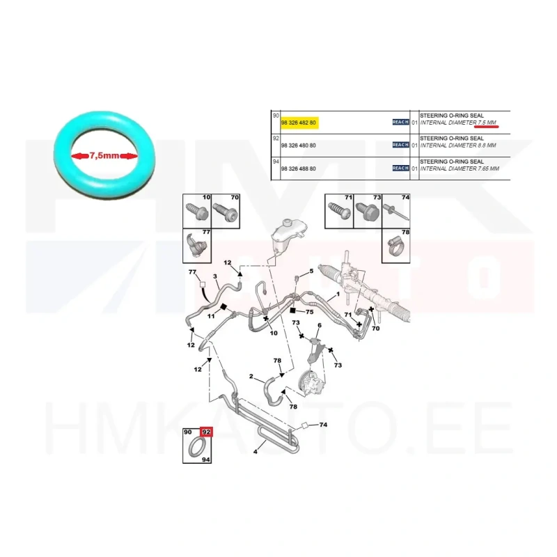 Joint torique tuyau de direction assistée OEM Citroen/Peugeot 7,5mm
