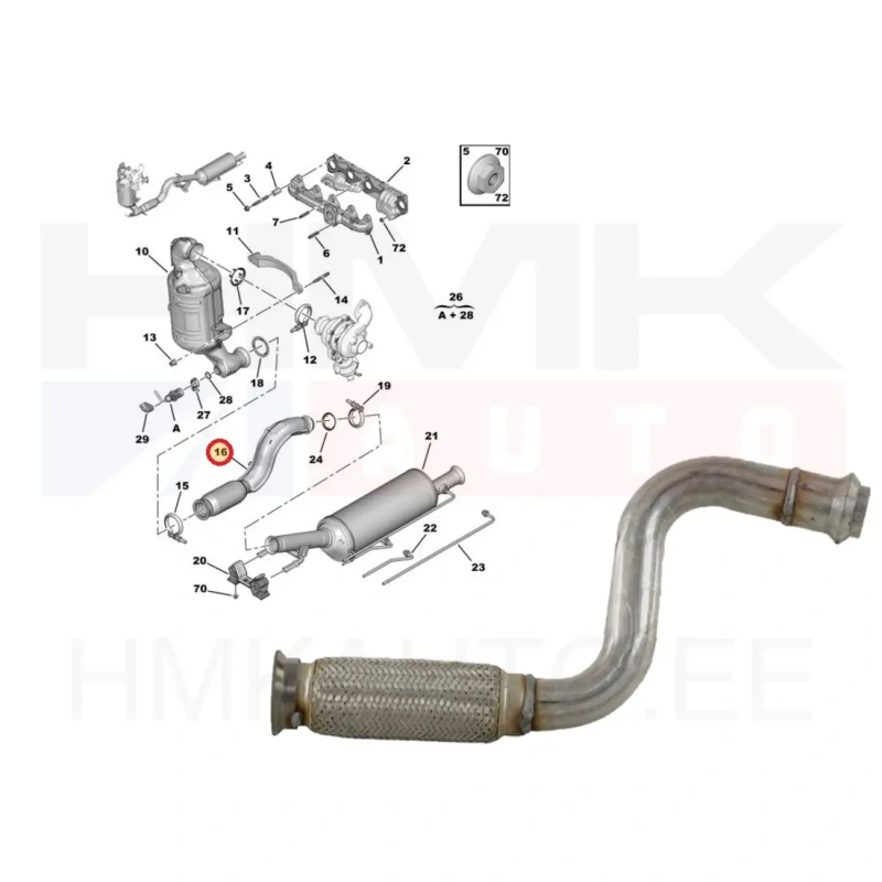 Tuyau d'échappement avant C4,Berlingo / Peugeot 3008,5008,Partner 1,6BlueHDI Euro6 DV6F