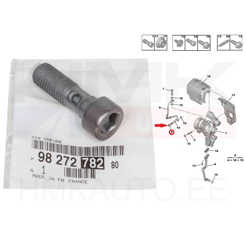 Vis banjo bas tuyau graissage huile turbo OEM Citroen/Peugeot 1,2 EB2