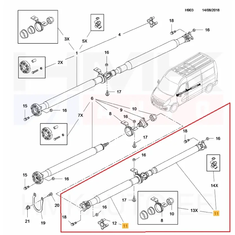 Карданный вал OEM Renault Master RWD L3 2010-