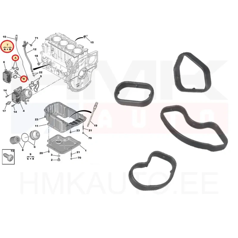 Комплект прокладок маслоохладителя OEM Citroen/Peugeot/Fiat 1,5BlueHDI DV5R