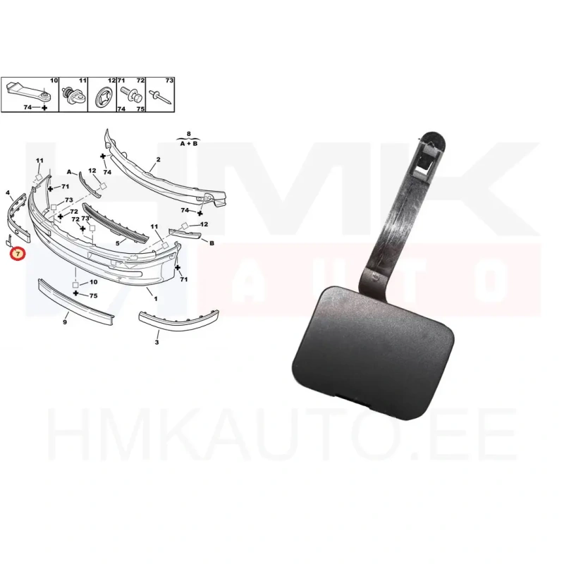 Крышка буксировочного отверстия переднего бампера OEM Peugeot 406