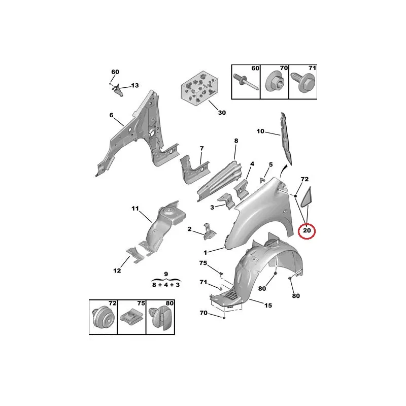Накладка переднего левого крыла OEM Citroen Berlingo/Peugeot Partner 2008-